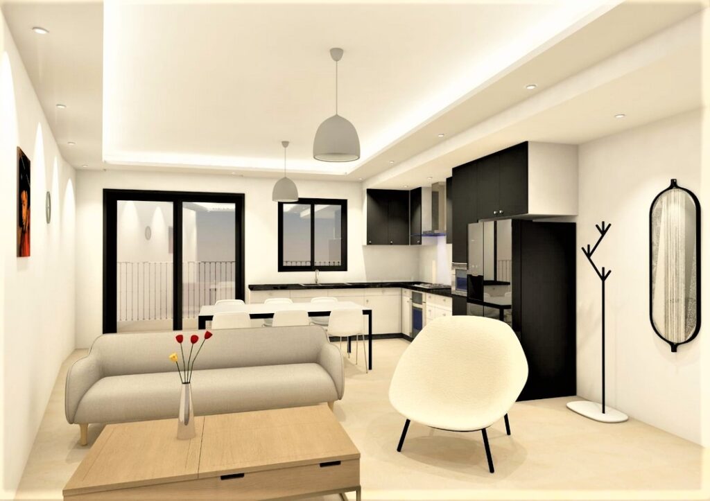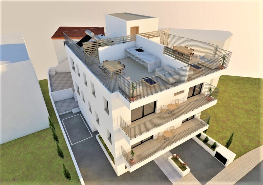 The apartments are located the one on the first floor and the other on the second floor. The building consists of only these two apartments. The apartments are very spacious for two-bedroom residences and the covered area of their internal space is 93 sq.m. They also have covered balconies of 14 sq.m. each and roof garden for both of them. The total area of the covered space totals to 107 sq.m. Their construction has recently begin after all relevant building permits have been received from the owners and is expected to be completed on or before the end of 2024.