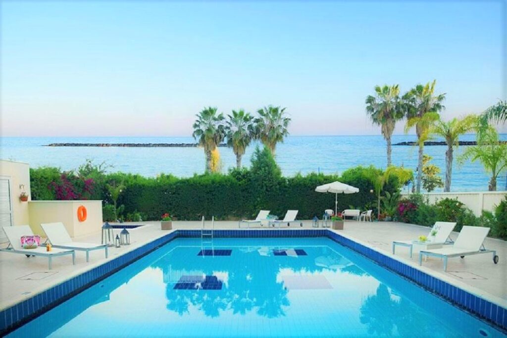 Located at Agios Tychonas tourist area, right on the front Beach road 20 metres from the sea. !