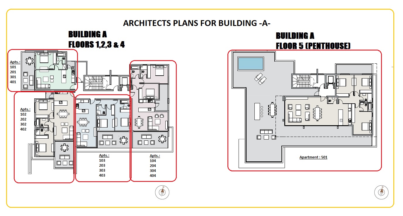 The site is divided into two buildings. Building A, (Denoted as Apartments A 102, A 202 e.t.c) and Building B, (Denoted as Apartments B 102, B 202 e.tc) as you may check and identify in the table provided below for your information. The buildings themselves, exemplify a modern structural quality, a contemporary design, and elegant interiors with modern technologies. (See Attached Buildings Specifications in Attachments Section Below) All these are harmoniously blended and balanced and will offer its potential inhabitands, a lazy and luxury living with a touch of a sophisticated urban edge to the coastal, city living.