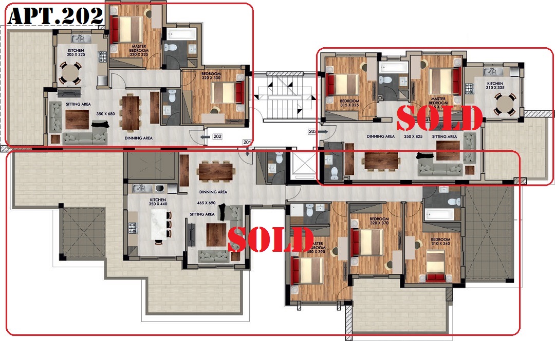 | 2nd Floor 202 | 2 bedroom apartments | 86.05 | 13.22 | 17.32 | 116.59 | 9.02 | 125.61 | € 575,000+VAT |