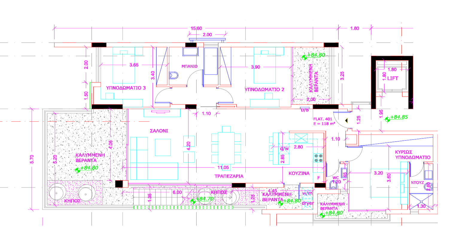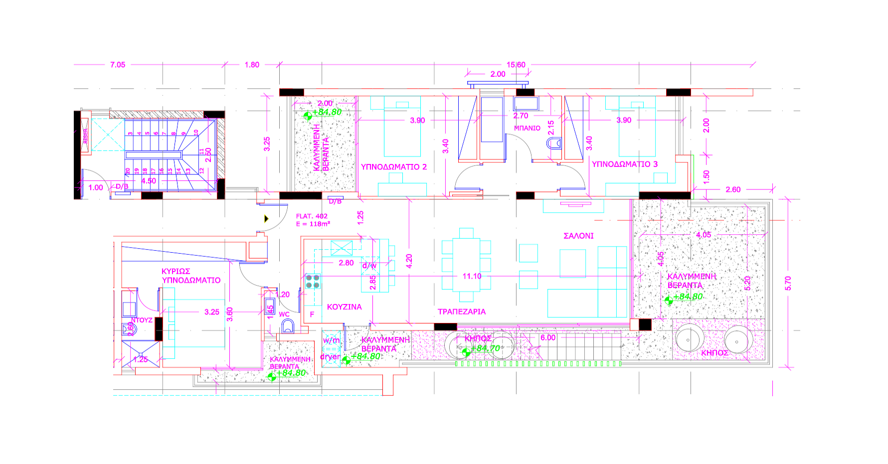 - Πρόβλεψη για A/C σε σαλόνι και υπνοδωμάτια και Προβλέψεις για εγκατάσταση ανεξάρτητων ηλεκτρολογικών θερμικών σωμάτων.