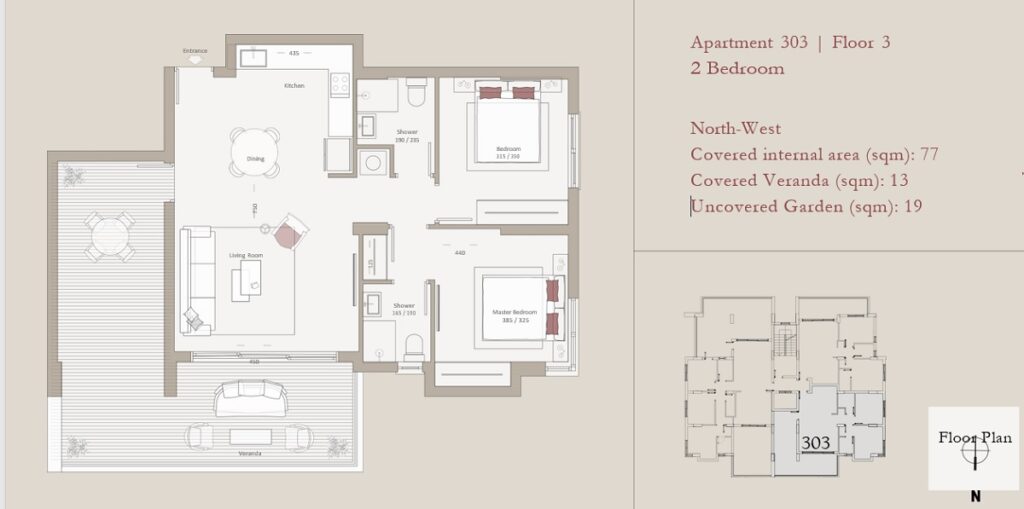 - Internal Area: 77 m²