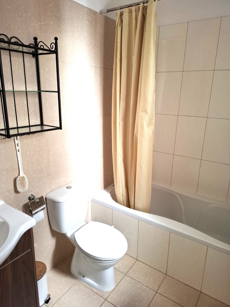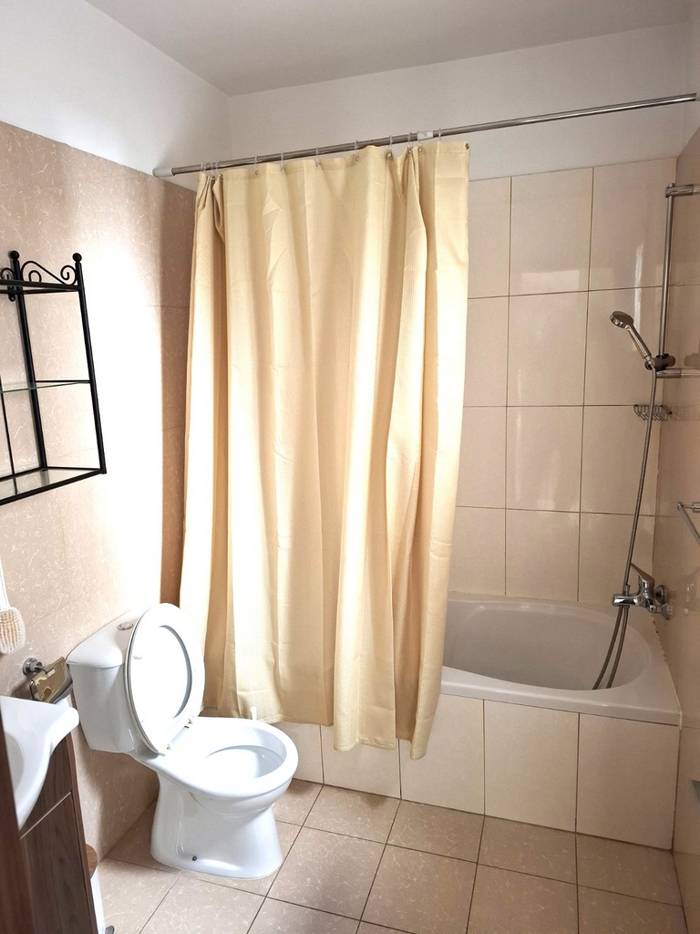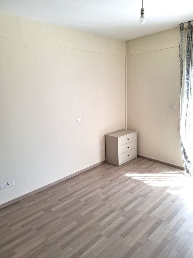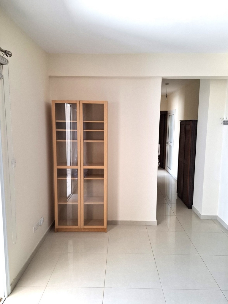 The apartment is 91 sq m. It has large balconies, 2 bedrooms, 2 toilets, a large living room and a kitchen. It is freshly painted and is located on the 1st floor of the apartment building.