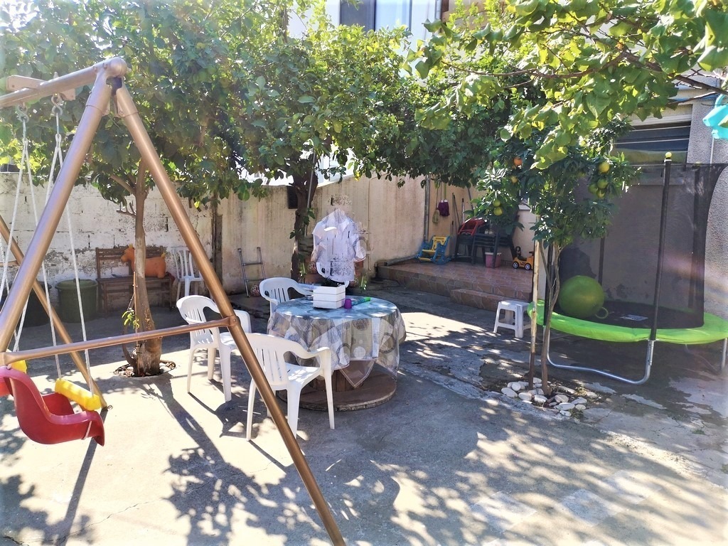 The house has been erected in 1977, and is a very strong and durable solid concrete structure maintained in a fairly good condition. The owner, has issued a private school license and it can also be used for this purpose as well. On the back side of the building there is a big orchard with trees about 100(m²) with Lemon, orange and mandarin trees.