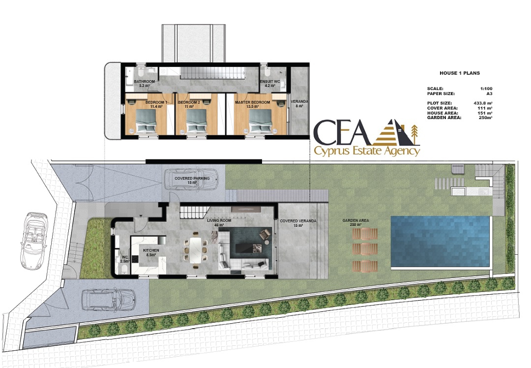 Villa No.1, 433,80(m²), 151(m²), 29(m²), 180(m²), 9(m²), YES € 385,000