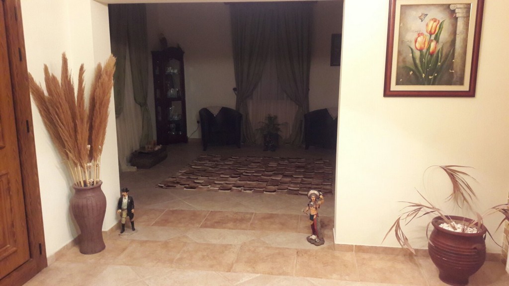 Άλλες διευκολύνσεις: 1 Καλυμμένο γκαράζ με ηλεκτρικό ρολό, Πέργκολα γύρω από το σπίτι 40 μέτρα, 3 μπάνια (2 με νεροχύτη και νιπτήρα για τους καλεσμένους σας), 1 ευρύχωρο σαλόνι με τζάκι, δεύτερο σαλόνι, κουζίνα, δωμάτιο με γραφείο στον πρώτο όροφο, 3 μπαλκόνια, ώριμος κήπος, μπάρμπεκιου και παραδοσιακό φούρνο. Τέλος η οροφή (Ταράτσα) καλύπτεται από κεραμικό πλακάκι.