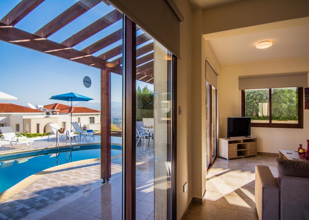Η βίλα απολαμβάνει εξαιρετικής θέας σε ολόκληρο τον κόλπο της Πόλης της Χρυσοχούς. Υπόσχεται να σας προσφέρει μαγευτικά ηλιοβασιλέματα με το βλέμμα στην χερσόνησο του Ακάμα. Αληθινά πολυτελής βίλα που έχει κατασκευαστεί για να μεγιστοποιήσει τον αρμονικό και εκλεπτυσμένο σύγχρονο τρόπο ζωής.