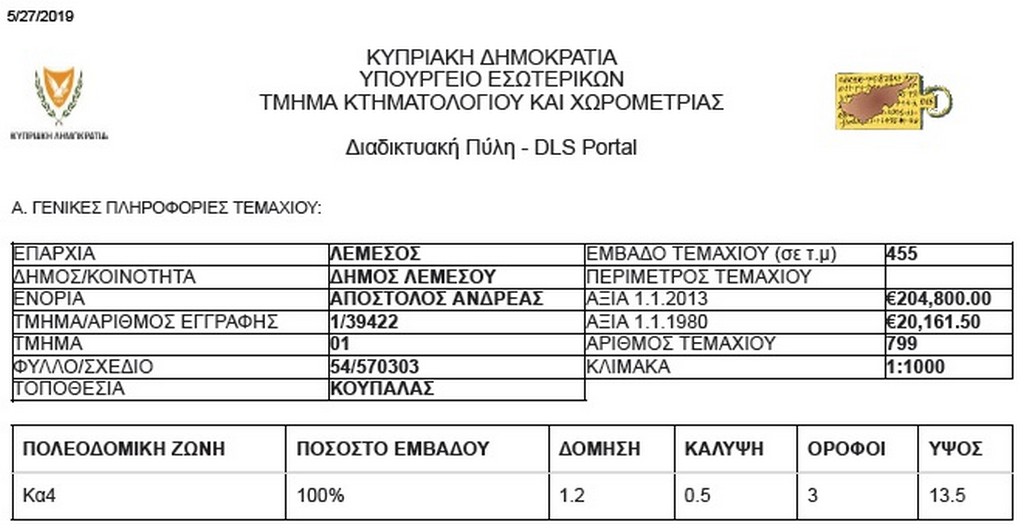 Πολεοδομική Ζώνη Κα4 | Ποσοστό Εμβαδού 100% | Συντ. Δόμησης 120% | Κάλυψη 0.5 | Όροφοι 3 | – Ύψος 13,5μ |