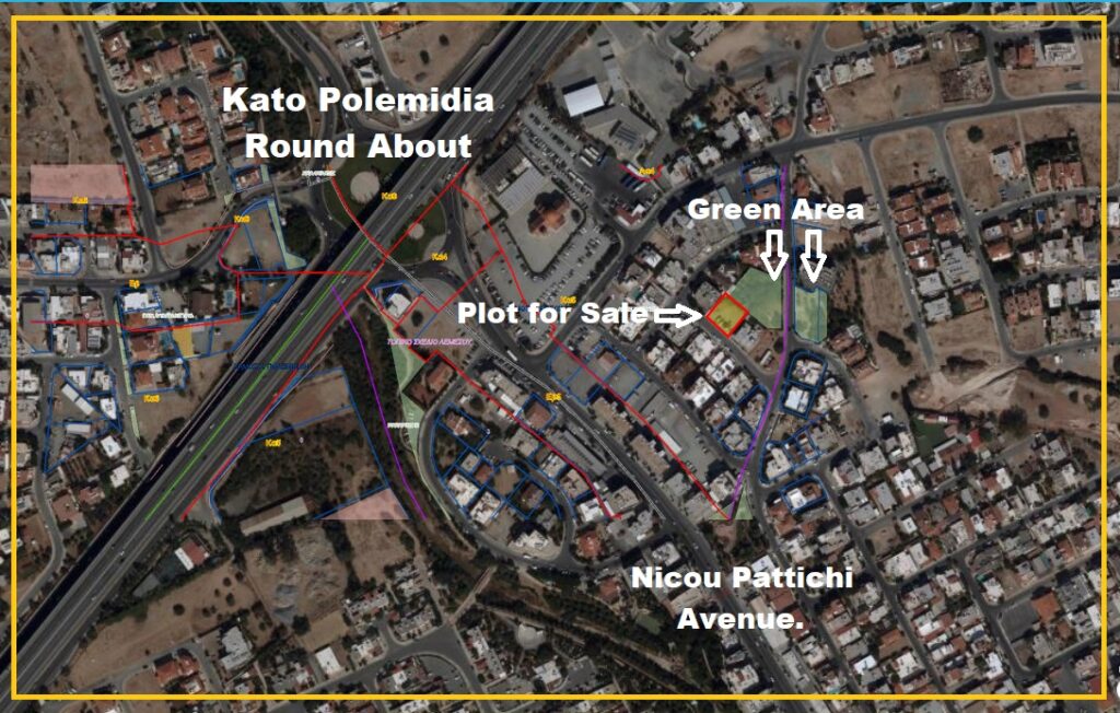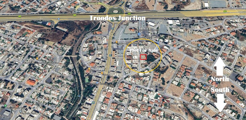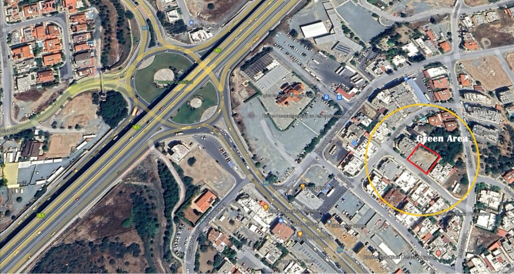 The plot is located South of the Limassol-Nicosia Motorway and has easy and quick access both to the South (via Nikou & Despinas Pattichi Street) and to the North (via Troodos Junction). The Plot has a Facade of about 23metres and its orientation is West. It is about 200 meters east of Nikou and Despinas Pattichi street and American Academy, and about 260 meters southwest of Frederick University and behind the well-known restaurant of Goody’s. (About 150 meters east).