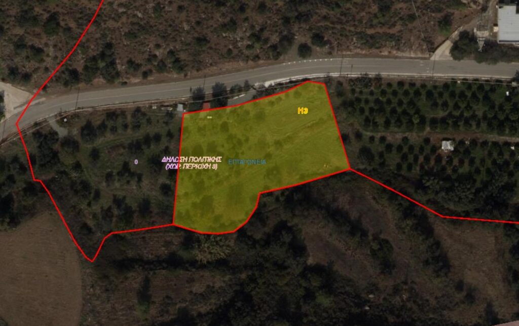 This is a residential Plot of land, adjacent to the Eptagonia main road about 600m west from the centre of the village. The land can be exploited residentially and is ideal for holiday homes.