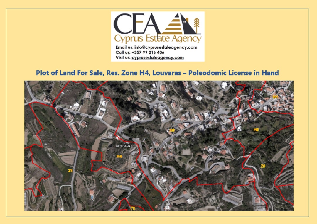 Οικιστικό Τεμάχιο με έτοιμα αρχιτεκτονικά σχέδια και Πολεοδομική Άδεια, για την ανέγερση κατοικίας τριών υπνοδωματίων στον Λουβαρά, Λεμεσού, διατείθετε προς πώληση. Το τεμάχιο είναι κανονικού ορθογώνιου σχήματος και εμπίπτει στη πολεοδομική ζώνη οικιστικού σχεδιασμού Η4, η οποία κατά τη στιγμή της καταχώρισης επιτρέπει 40% συντελεστή δόμησης, 25% κάλυψη δόμησης, και μέγιστο αριθμό ορόφων 2 με 8,3 μέτρα μέγιστο ύψος κτιρίου. Η Περίφραξη με την τοιχοποιία αντιστήριξης έχει ολοκληρωθεί, όπως αυτό φαίνεται και στις συνημμένες φωτογραφίες και οι χωματουργικές εργασίες ομαλοποίησης της επιφάνειας του τεμαχίου έχουν ολοκληρωθεί. Το τεμάχιο είναι εφαπτόμενο και έχει πρόσβαση σε δημόσιο ασφαλτόδρομο.