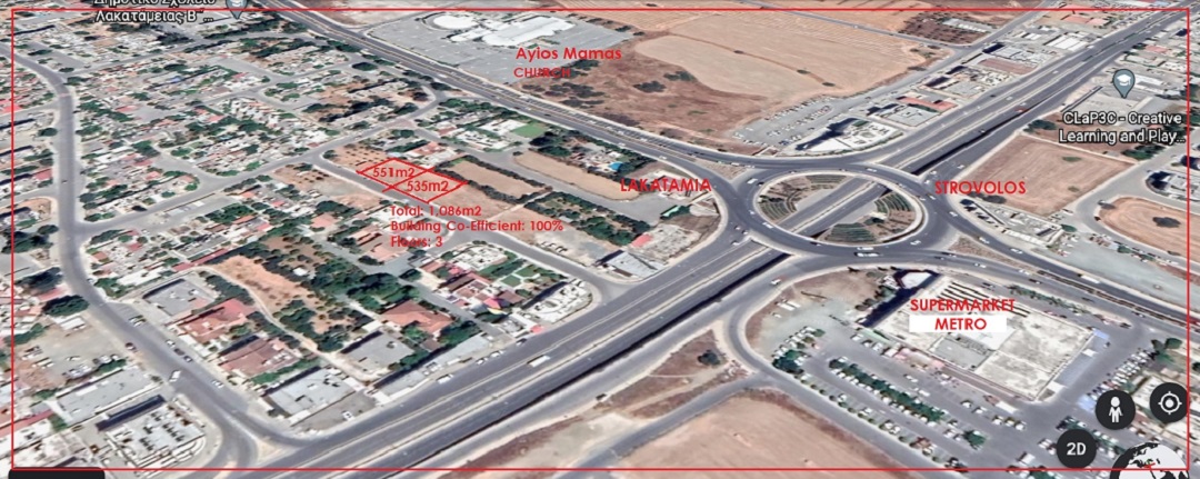 2 consecutive building plots of 551m2 and 535m2 (Total:1,086m2) in Metro area, borders of Strovolos and Lakatamia.